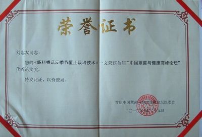 為食用菌產(chǎn)業(yè)的發(fā)展做出貢獻(xiàn)授予先進(jìn)工作者稱號(hào)